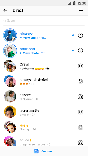 New Direct: Disappearing photos and videos will now appear alongside text messages and reshared posts, so you can seamlessly go back and forth with friends in the same thread.Swipe left into Direct and tap the new blue camera icon at the bottom to take a disappearing photo or video.Tap the arrow to send it to individual friends or groups of friends.New disappearing messages sent to you are highlighted blue in your inbox. Tap to view them.